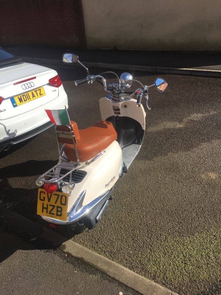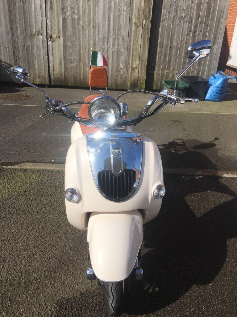 This is a Neco Borsalino scooter. Nice quiet little runner, New MOT, can be used on provisional licence. Cheap to run, test ride welcome, electric start. Was used as a stop gap for 17 year old to commute before passing car test now no longer needed. Has been kept in garage.