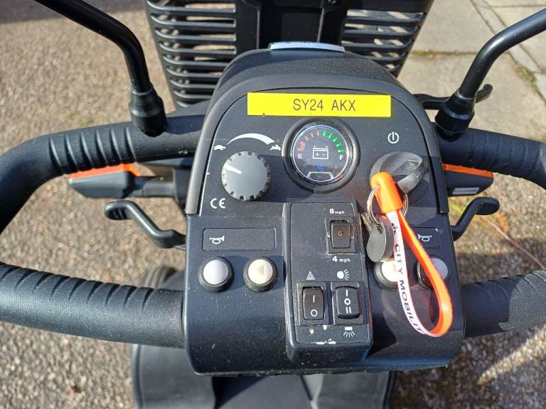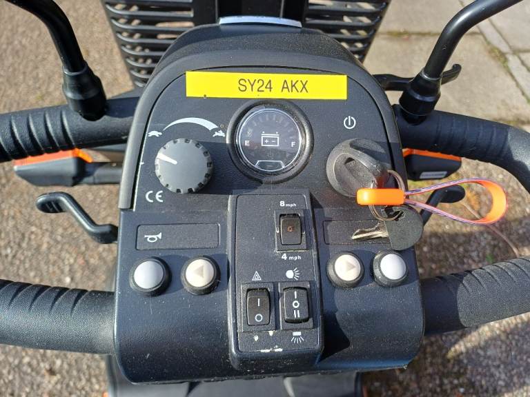 Electric scooter, little used only covered 10 miles, max speed 8mph covers up to 15 miles on a single charge. Road and pavement legal, comes with V5. Complete with shopping basket and saddle bags