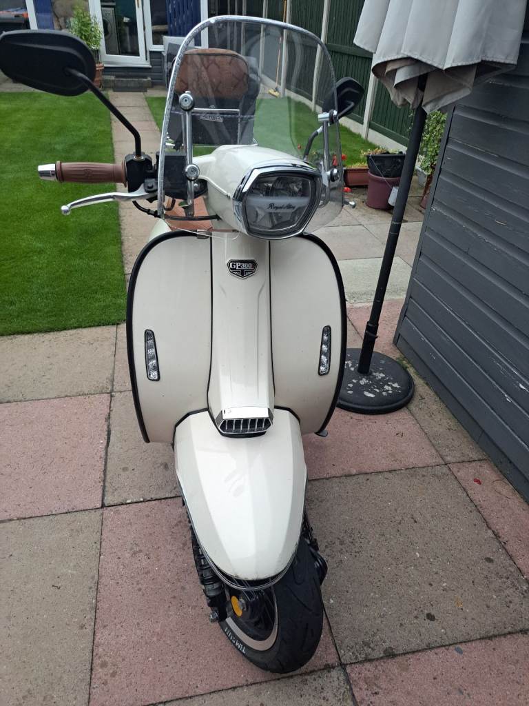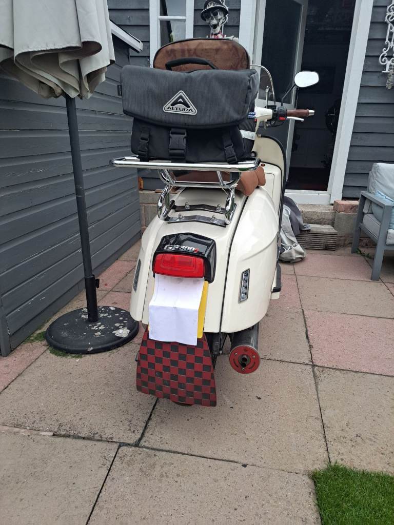 Here is my GP300S Royal Alloy petrol automatic scooter, a fantastic powerful economical reliable 2 seat scooter that has never missed a beat. It currently has a private registration on it that will be removed prior to the sale, i am told it can be done on the day on line, low mileage with a host of extras......screen ,front rack, tan seats, back rack, panel flashes, additional tool box top indicators.and tassimo exhaust wich sounds great oh and it has been de badged to give it the further classic look..... Parkas and Lambretta sx lookalike to follow.