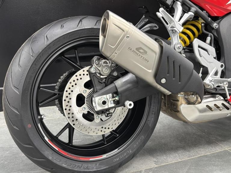 The brand new SRK 800 RR gives incredible feel from high-quality, Marzocchi adjustable front suspension and a Marzocchi adjustable shock absorber at the rear. The Brembo braking system provide superb stopping power with duel, 320mm discs at the front and a single 260mm disc at the rear. These features, combined with lightweight alloy wheels give an exciting and confident feel. The wheels are measured at 120/70 ZR17 for the front and 180/55 ZR17 for the rear. They're fitted with Pirelli Angel GT tyres.