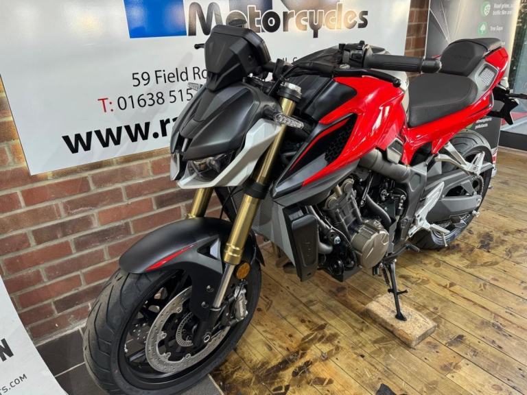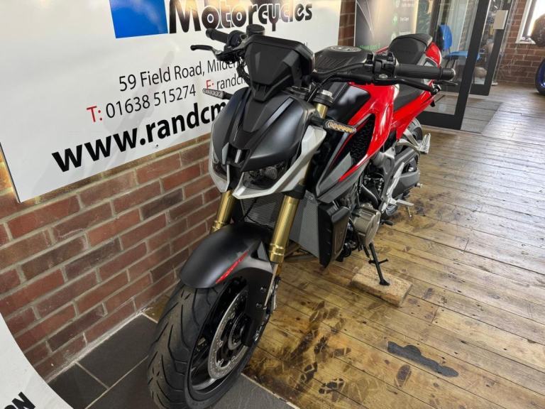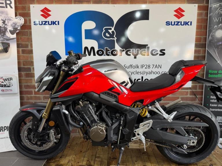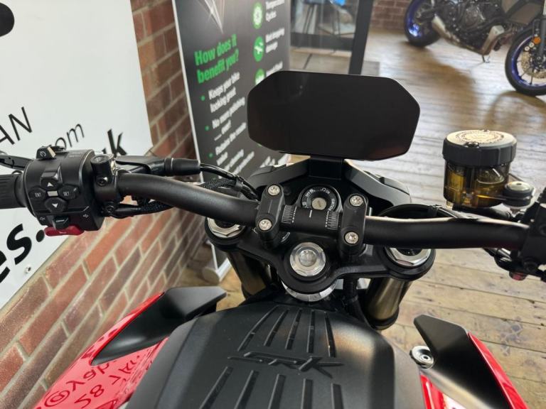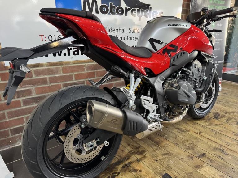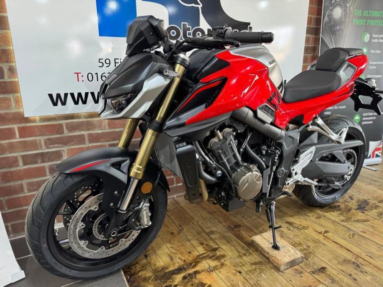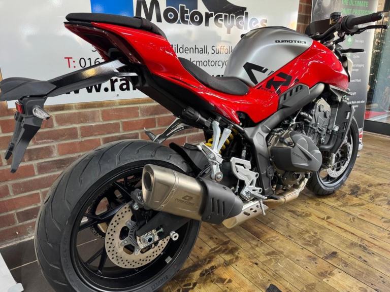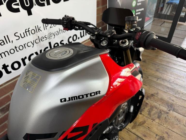 Discover the thrill of riding with the QJMotor SRK 800, an exceptional naked sports bike designed for enthusiasts who crave both performance and style. This captivating motorcycle effortlessly combines classic design with modern engineering, offering an exhilarating experience on every ride. With its robust 778cc engine, the SRK 800 stands out as a top contender in the middleweight motorcycle world thanks to its 4-cylinder, 16-valve DOHC configuration that delivers an impressive rated output of 95 BHP at 10,000rpm.This powerhouse rides smooth thanks to Ride By Wire fuel injection with a compression ratio that optimizes performance while the QJMotor SRK 800's maximum torque of 74Nm at 9500rpm ensures thrilling acceleration.Glide through corners with confidence, thanks to the Marzocchi adjustable USD front forks and a Marzocchi adjustable mono-shock at the rear, offering superior suspension and stability. Stop on a dime with the high-performance Brembo disc brakes dual fully floating 320mm at the front with 4 piston radially mounted calipers and a single 260mm at the rear equipped with ABS. The lightweight multispoke 17-inch alloy wheels, coupled with 120/70 ZR17 front and 180/55 ZR17 rear Pirelli tyres, provide a perfect blend of agility and grip.Certified to meet ever stringent Euro 5+ emissions standards, the SRK 800 is as environmentally conscious as it is thrilling to ride. With its electric starting system, electric ignition, and Euro 5+ certification you'll find it easy to embark on any adventure. Plus the 17.5L fuel tank ensures you'll travel far and wide with minimal stops. Every journey is comfortable and enjoyable, with a seat height of Only 815mm, making it accessible to a wide range of riders of all sizes.Embrace the open road as you revel in the perfect balance of design and power. With dimensions of 2085mm in length, 770mm in width, 1150mm in height and a ground clearance of 150m the QJMotor SRK 800 is built to conquer both city streets and open highways. Whether you're a seasoned rider or new to the world of motorcycling the QJMotor SRK 800 invites you to indulge in a unique and thrilling experience every time you ride.The full colour TFT dash tells you Everything that you need to know at a glance, including tyre pressures, Full LED lighting not Only looks stylish but helps you to See and be Seen anywhere. The SRK really does make a Statement.