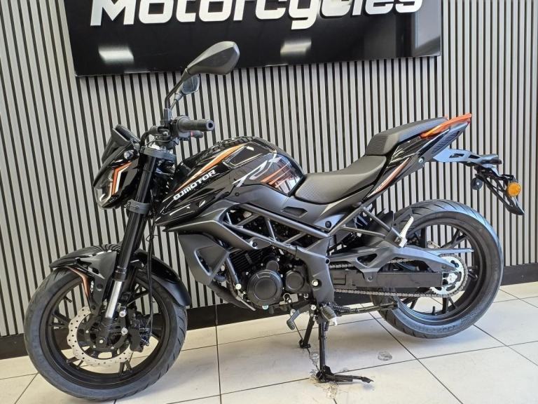 Introducing the QJMotor TRX 125, your perfect companion for urban commuting and a thrilling introduction to the world of motorcycling! With a displacement of 125cc, this naked motorcycle is designed to deliver an exhilarating yet manageable ride, making it ideal for both beginner riders and seasoned enthusiasts alike.