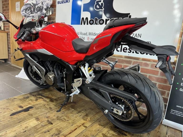 The brand new QJMOTOR SRK 800 RR, from the WSBK Championship to the roadMeet the dynamic, exhilarating QJMOTOR SRK 800 RR! A superb example of cutting edge engineering that is proving itself across Europe whilst competing in the World SuperSport Championship. This year it has accumulated a lot of wins for the SSP Challenge. Its sleek design has been proven whilst the robust performance has shown that it can compete head-to-head against the established sports market while offering incredible value.Underneath the brand new SRK 800 RR's stylish exterior is a potent, 778cc engine, boasting a 4 Cylinder 16v DOHC configuration. Roaring to the redline with a rated output of 94hp at 10,000rpm and has an output torque of 75Nm at 8500rpm. This gives you incredible speed and complete control of the road. The SRK 800 RR is testament to its superior engineering, featuring a compression ratio of 67.0*55.2mm bore x stroke giving perfect balance when in motion.The brand new SRK 800 RR gives incredible feel from high-quality, Marzocchi adjustable front suspension and a Marzocchi adjustable shock absorber at the rear. The Brembo braking system provide superb stopping power with duel, 320mm discs at the front and a single 260mm disc at the rear. These features, combined with lightweight alloy wheels give an exciting and confident feel. The wheels are measured at 120/70 ZR17 for the front and 180/55 ZR17 for the rear. They're fitted with Pirelli Angel GT tyres.The SRK 800 RR has a Euro 5+ emissions certification and has modern features that cater for all types of rider. If you ride more city based, navigating through tight streets or more combined along A-roads or motorways, the 6-speed gearbox works seamlessly with an up/down quickshift giving you complete control. The design includes a comfortable, seat measuring 810mm in height inviting you to simply get on and ride.The SRK 800 RR will help give you immense confidence as you lean into every turn after proving itself in the world of racing. The SRK 800 RR' dependable, Marzocchi suspension and Brembo braking will allow you to enjoy every ride, every time. The wheelbase has a measurement of 1450mm and the ground clearance measures 130mm, this gives unrivalled feel for spirited rides or relaxed journeys alike.Beyond its impressive performance statistics and proven, race winning reliability, the SRK 800 RR is equipped with a 16-litre tank that helps give 'real world' motorcycling enjoyment mile after mile. Prepare yourself to embrace countless memories on a motorcycle that combines bold aesthetics with top tier capabilities, all wrapped in a promise of exhilarating riding.Experience the thrill of the brand new, QJMOTOR SRK 800 RR - Where modern technology meets affordabilityQJMOTOR - Always Forward