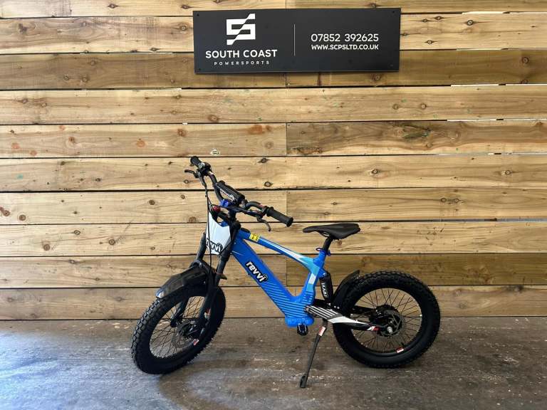 A super light electric-powered motor bike that has been specifically designed for 8-12 year old riders, Weighing in at only 20kg's. The bike can be used on the slow speed setting (9.5mph) whilst the rider hone's there skills. Once they gain confidence they can progress onto the medium (13.5mph) and fast (20mph) speed settings. The bike features foldable MX style foot pegs and a full grip twist throttle. The bike also features Off road rubber air filled tyres suitable for various ground types & a hub motor that delivers reliable performance. The front and rear suspension offer's comfort while riding. Hydraulic front and rear disc brakes for great stopping performance.
