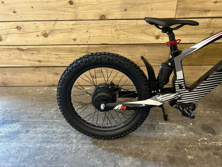 A super light electric-powered motor bike that has been specifically designed for 10 year old + riders, Weighing in at only 22.5kg's. The bike can be used on the slow speed setting (10mph) whilst the rider hone's there skills. Once they gain confidence they can progress onto the medium (16mph) and fast (22mph) speed settings. The bike features foldable MX style foot pegs and a full grip twist throttle. The bike also features Off road rubber air filled tyres suitable for various ground types & a hub motor that delivers reliable performance. The front and rear suspension offer's comfort while riding. Hydraulic front and rear disc brakes for great stopping performance.