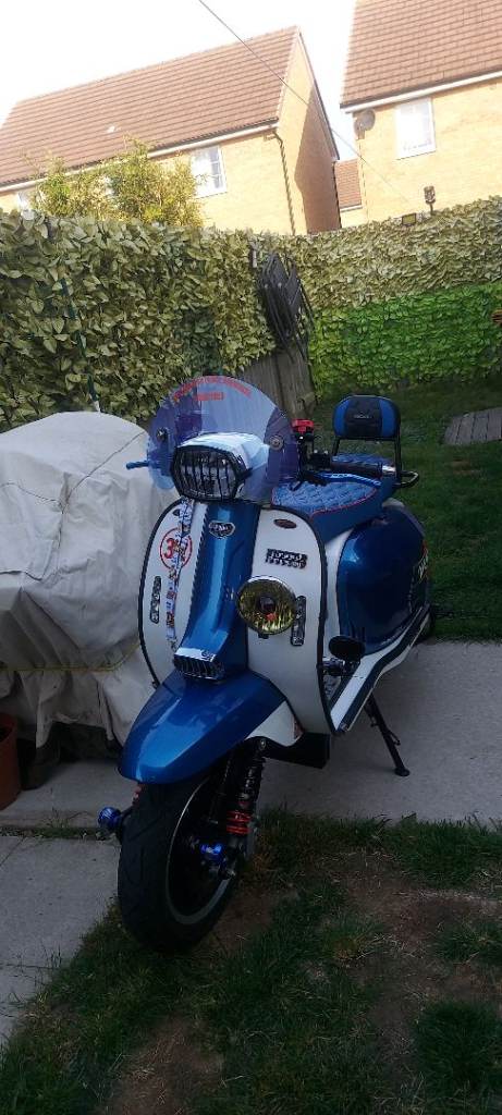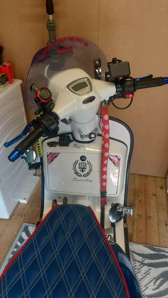 Royal alloy 210 23reg reg as a 125 fast auto very nice engine done by pm tuning lots of time spent on this scooter 19bhp on dyno open to px for vespa or lambretta heted grips usb it is a eye catcher dose not need eny think just jump on and go or swops or 3.5k