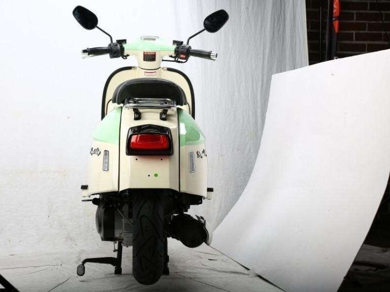 Metal bodied beauty, this time adding a modern engine cooling to the mix. The GP125 AC gives fantastic and reliable town based riding due to its low maintenance, Air Cooled 125cc engine. Its 11-litre fuel tank means less frequent fuel stops. With disk brakes front and rear and 12-inch wheels, you will feel safe and secure buzzing around on this stunning scooter. a CBS system for added stability under braking. Performance and a great specification fused into a perfect package of useability, jaw-dropping classic looks and attention to detail elevate this attention-grabbing machine into something impossible to ignore. A great choice for both classic and modern scooterists alike and a timeless design that will stay looking fresh for years to come.