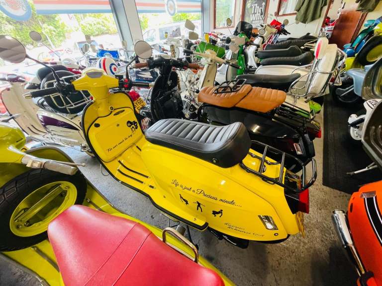 Scomadi TT 125 21 plate finished in rare bright yellow, satin black speed rack, black levers , mirrors, grips , wheels, removable black sx decals & song titles “private plate is not with the sale “, like brand new condition others in stock & required