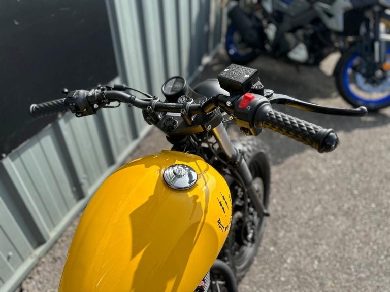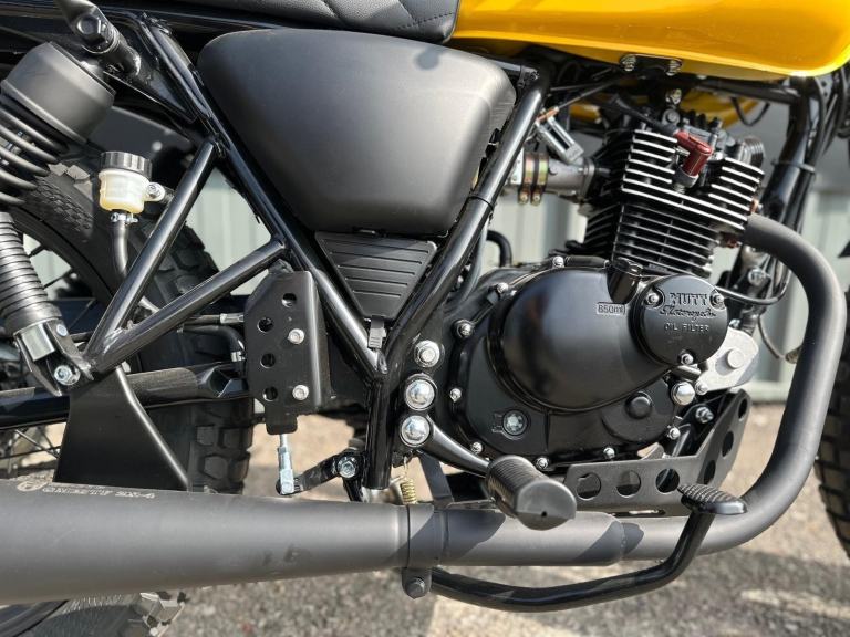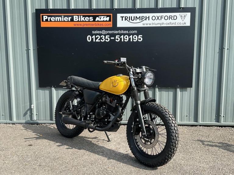 We now have this Stunning One Owner 2025/75 Mutt RS-13 125. The RS-13 follows the classic Mutt stylistic approach - retro styling and riding experience with modern reliability and ease of operation. The 125cc air-cooled single-cylinder engine is housed in our tubular twin shock frame and feels like a much bigger bike, a perfect machine for carving up inner-city traffic or just as at home slamming through the twists and turns of the countryside. Running narrower handlebars for an upright aggressive riding position, it‚ perfect for hacking through the city traffic and that super bright halogen headlight lights up the road ahead with ease from behind the matt black grill. Keeping to it retro classic roots the RS-13 runs 18 wheels front and rear shod with super-fat, deep tread fat nobbly tyres. Please ask for any additional pictures or we can also offer a personal video presentation of the bike for you. Px very welcome, UK delivery can be arranged, Finance available (subject to your status), Call our experienced sales team now on 01235 519195 or email us at [Email address removed. Click Email button to contact us.] – Thanks for looking, Check out all of our other bikes at [Website URL removed] - Not all Bikes are on site, please contact us to arrange a viewing.