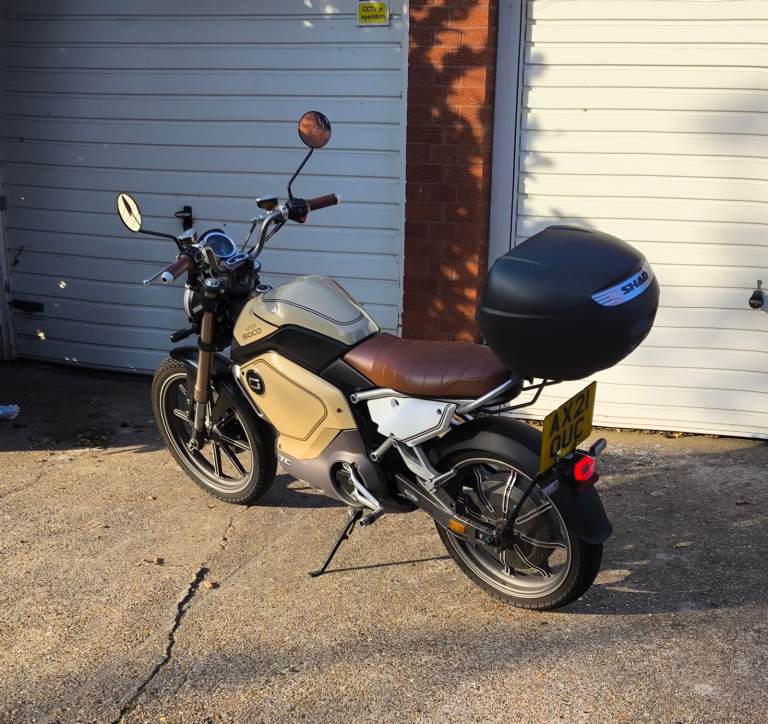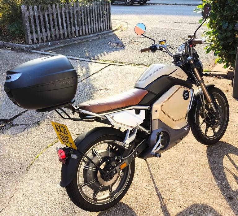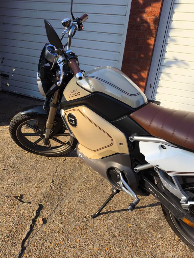 Super Soco TC. I bought brand new in 2021. It is classed as a 50cc which you will need a CBT for unless you passed your driving test before February 1st 2001 (in which case you can ride it without L plates). MOT 22nd July 2026. It is also simple to restrict/de-restrict this model in less than 2 mins for more speed and power, which isn't possible on later models. There are plenty of clips on youtube showing you how to do this.