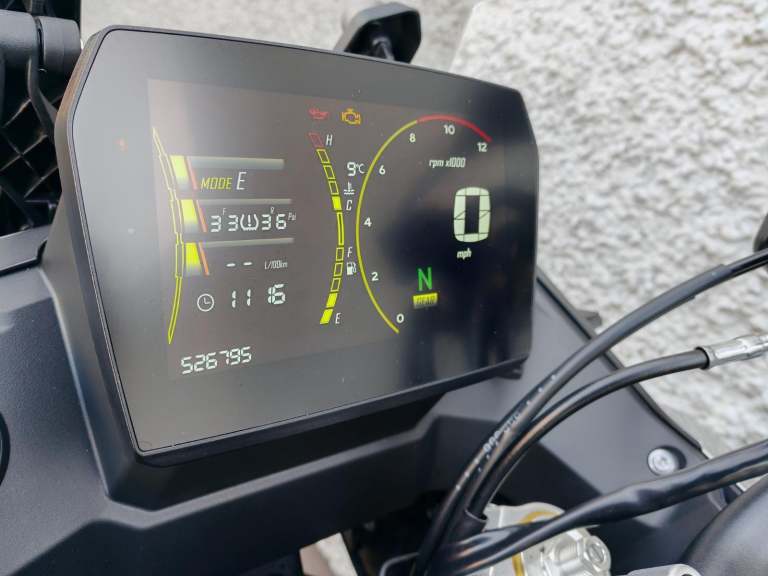 In addition, it incorporates important electronic aids to make the trip much safer and more comfortable: disconnectable TCS traction control and 2 driving modes. The new 525DSX also includes full LED lighting with auxiliary headlights, a manually adjustable windshield in 2 positions, hand guards, and a 7” LCD screen with all the information, Bluetooth connectivity, navigation, and a 1080p HD front camera to record movements.