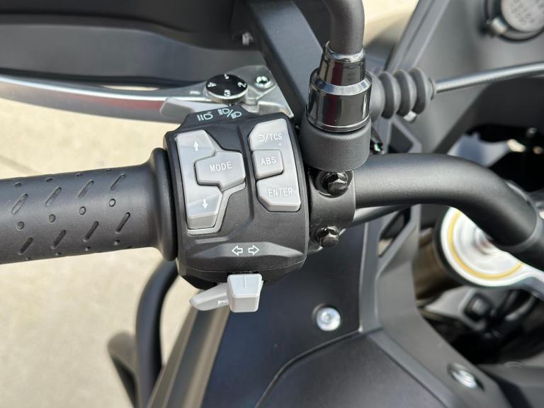 Comfort is paramount, with a design incorporating an accessible 835 mm seat height, forward-set foot pegs, adjustable levers, and a windscreen. The standard equipment includes a centre stand, HD front camera, luggage rack, and backlit switches, with the option to add a comprehensive luggage kit for just £699, enhancing your capacity for long journeys.