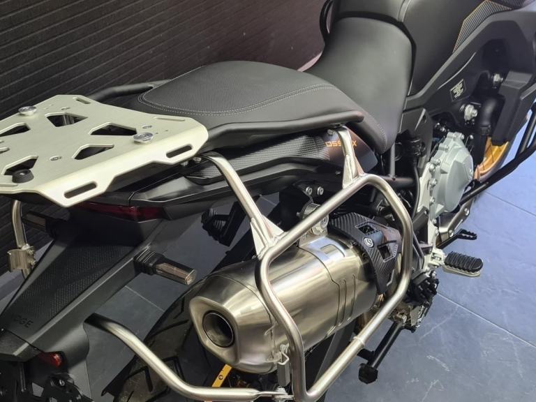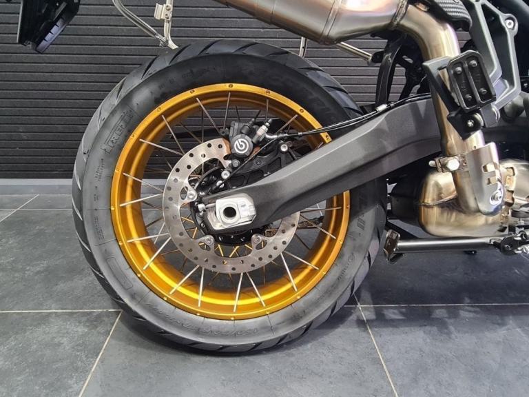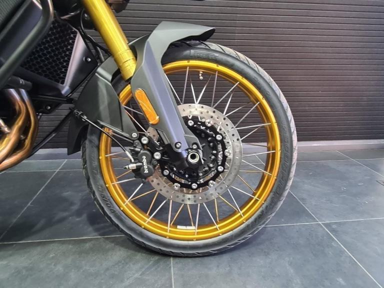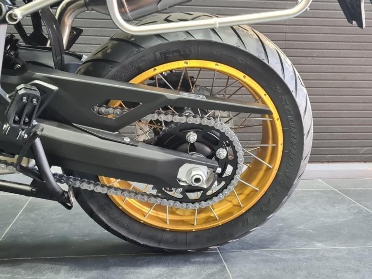 The premium chassis features a strong steel perimeter frame, an asymmetrical aluminium swingarm, and adjustable KYB suspension for confidence on and off-road. A steering damper enhances high-speed stability, and the 21”/17” spoked wheels run on Pirelli Scorpion Trail II tyres — ideal for adventure touring with a touch of trail ability. Brembo brakes and Bosch switchable ABS provide outstanding stopping power and control.