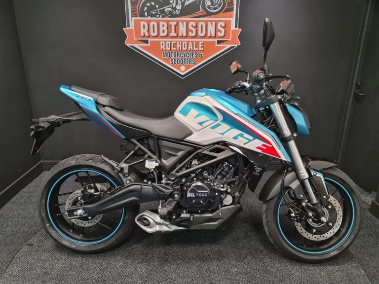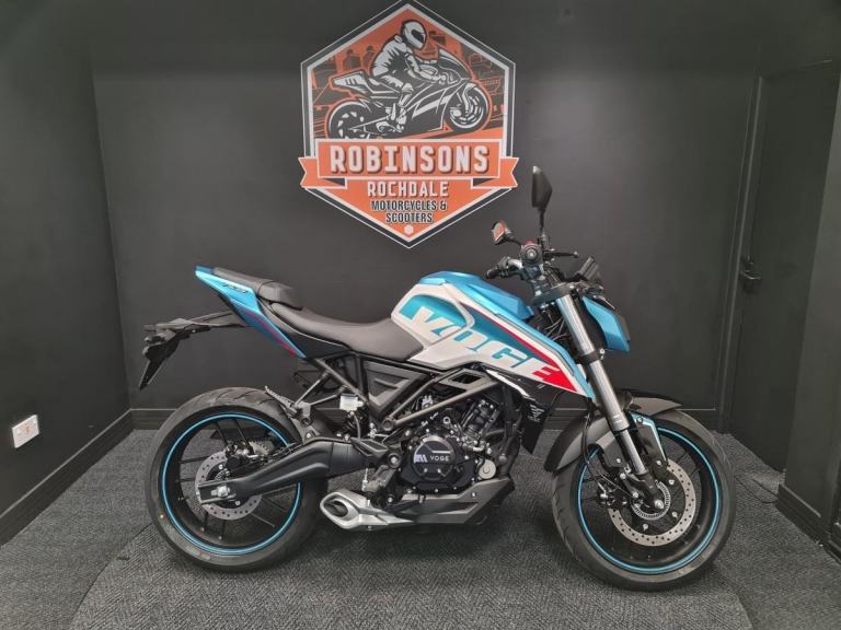 £2799 The VOGE R 125 is a 125cc, single-cylinder motorcycle from VOGE Motorcycles. It is a lightweight and easy to manoeuvre motorcycle that is designed for beginners and those who are looking for an enjoyable ride. It has a sporty design, with a single-sided swingarm and 17-inch wheels. It is powered by a 125cc, 4-stroke, air-cooled engine, which produces 14.7 horsepower and 10.5 Nm of torque. The VOGE R 125 also features a 6-speed gearbox with a wet clutch, a digital instrument cluster, with a unique style swing arm. It is available in a range of colours and comes with a two-year warranty.Buy On-Line or over the Phone, Low-Rate Finance Available. If it’s a new or used Motorcycle or Scooter you are after then look no further, Robinsons can make your dream come true, Nationwide delivery, Extended warranty, On site clothing, Parts and accessories department on site and a good coffee machine so pick up the phone or pop down to see us 7 days a week. Call 01706 716650 or WhatsApp 01706 716650. Email [Email address removed. Click Email button to contact us.]