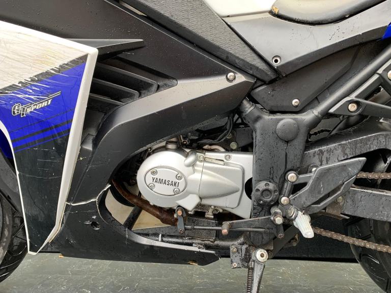 Here we have for sale a Yamasaki YM 50 as a project bike in overall not bad condition. This bike turns over on a jump pack but won't fire, we suspect it has a lack of compression. As shown, it is tatty in areas with scrapes to panels, the seat lock has also fallen out. The tyres are good, the electrics are functional bar the left hand indicator. The MOT expired 20/07/2024. We have the V5 for this bike, it was listed a Cat N in 2018.