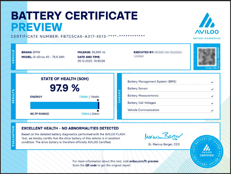 Boost Resale Value: Achieve a higher sale price and a faster sale with an independent battery certification.