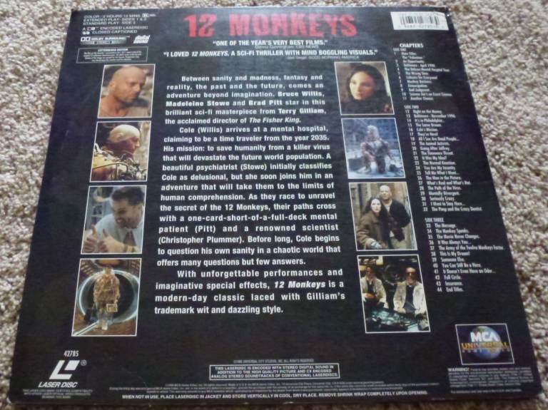12 Monkeys, Laserdisc (1995), 42785. USA pressing, released 1996.