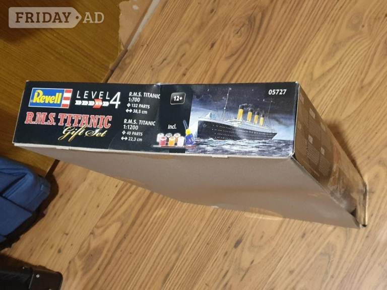 RMS Titanic Gift Set Revell Level 4 1 to 700 and 1 to 1200 Brand NewThis gift set includes two brand new model kits of the RMS Titanic by Revell, featuring a 1:700 and a 1:1200 scale. Both kits are level 4 and made of plastic material. The subject of the models is the iconic Titanic ship, making it a perfect addition to any collector's or enthusiast's collection. Slight dent in box, as seen in photo.The brand of the model kits is Revell, a well-known and respected manufacturer in the industry. The categories for this item are Toys & Games, Models & Kits, and Boats & Ships. This gift set is great for those who are interested in the Titanic and want to recreate it in a miniature form. Collect in Caernarfon or Bangor North Wales, NOT POSTING SORRY.