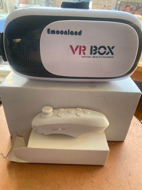 VR Box Virtual Reality Glasses Headset with head strap and Remote Control Colour Black and White complete with box only used twice unwanted present excellent condition
