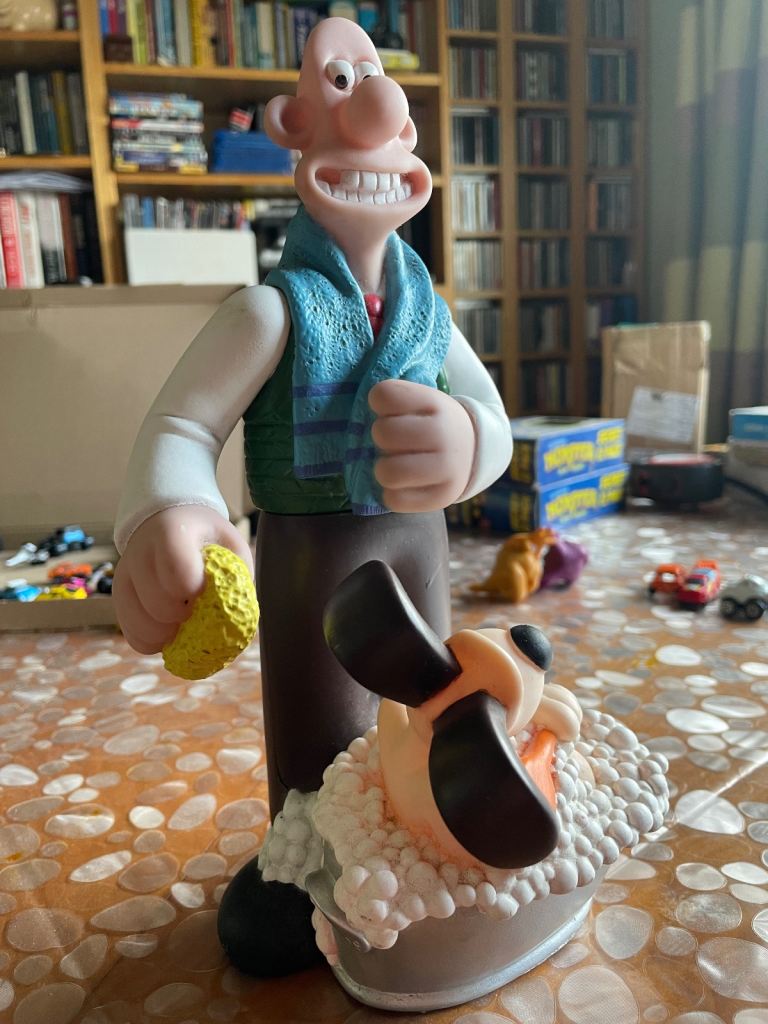 Wallace and Gromit Empty Bubble Bath Bottle with movable arm - Vintage 1989