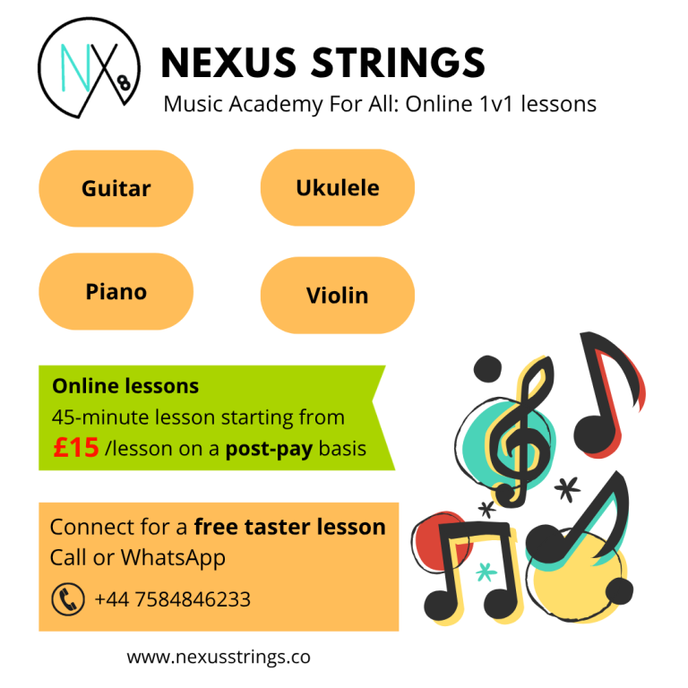 🎵 Learn Guitar, Piano, Ukulele & Violin Online – £15 per lesson. Book your first free lesson now!