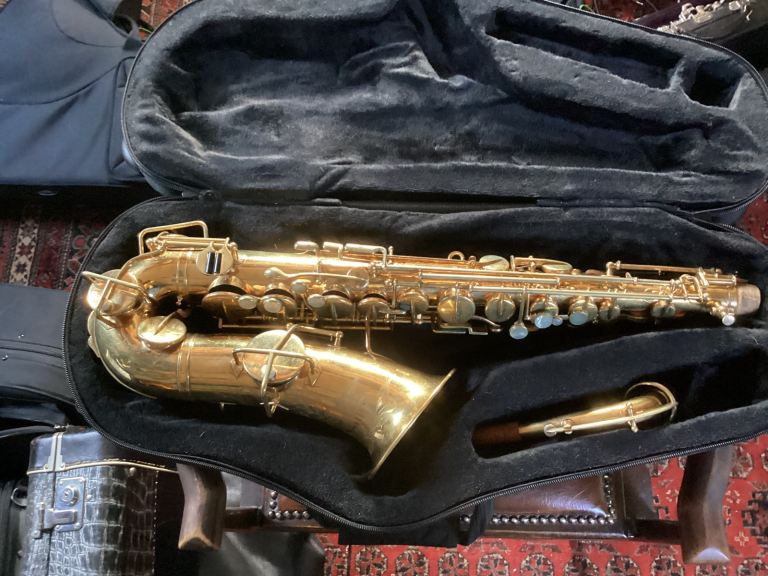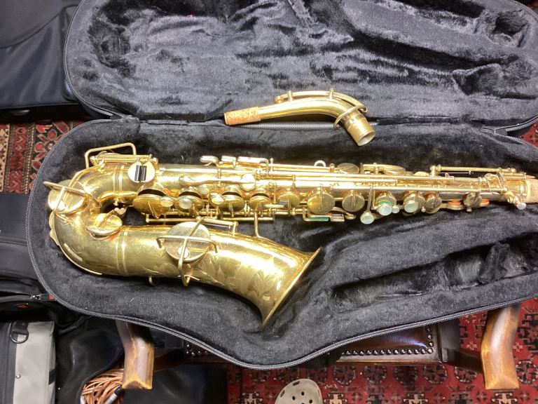 1913 Beuscher alto,fully GOLD plated not laquer,this is a beutifull sax,not replated or anything,re padded at great cost to me,allready to blow,Protec case
