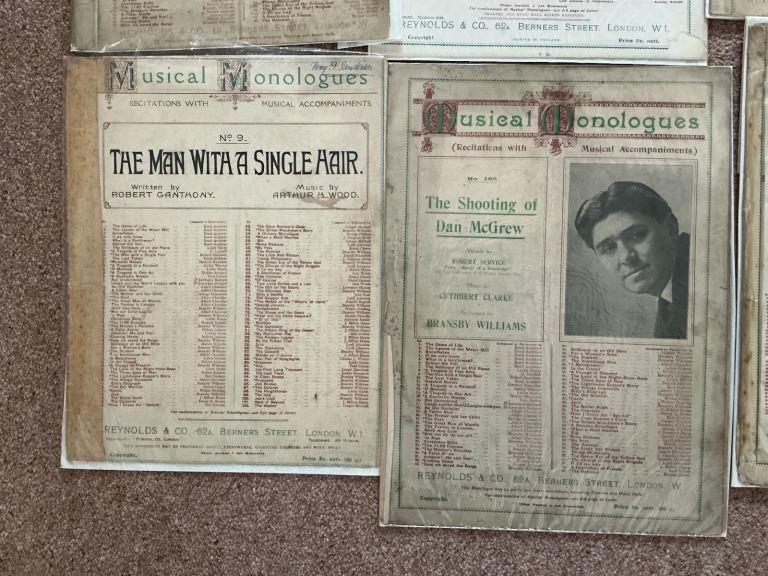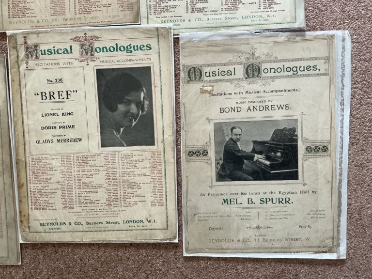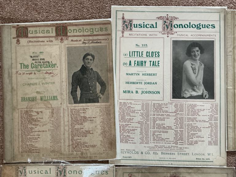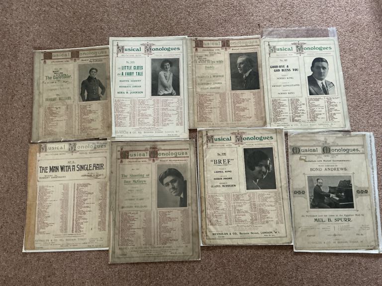Musical Monologues early 1900. Includes words and music. Collection Horsham or can post at your expense. £1 each.