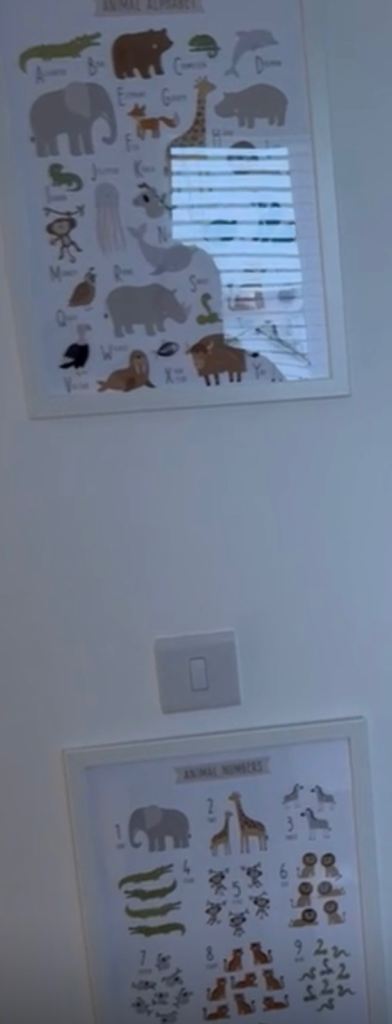 5 prints with frames- 3 animals, 1 letters, 1 number