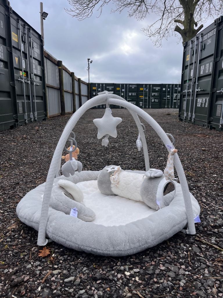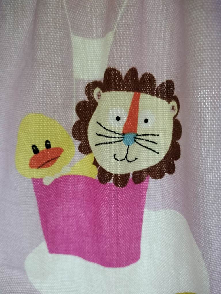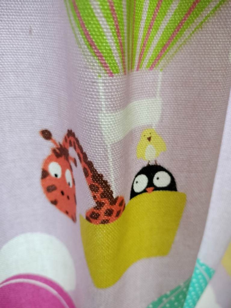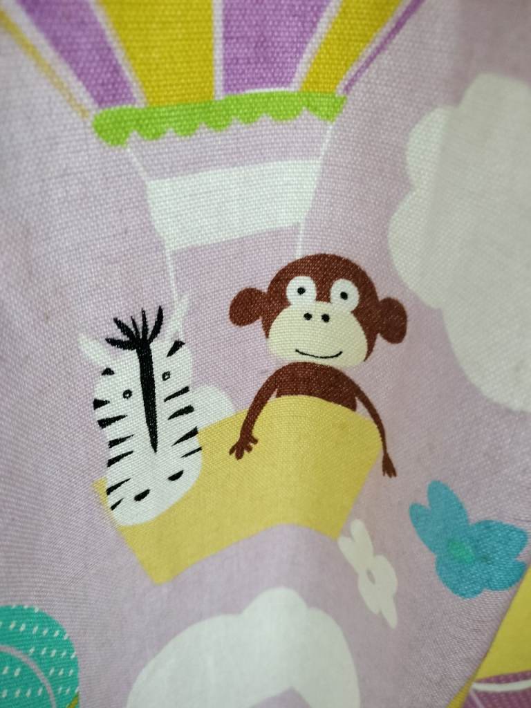Pattern includes animals in hot air balloons on a lilac/lavender background. In good used condition slight markings, see photos.