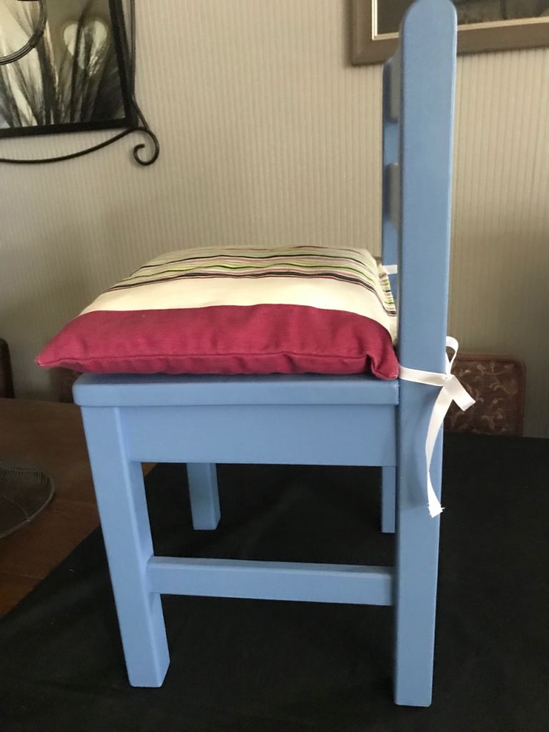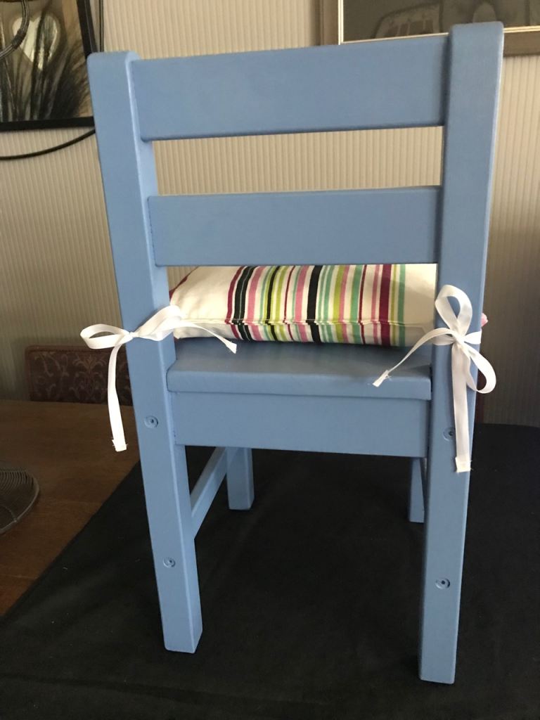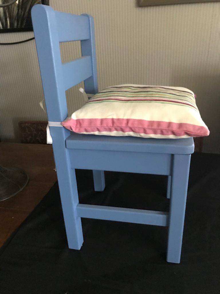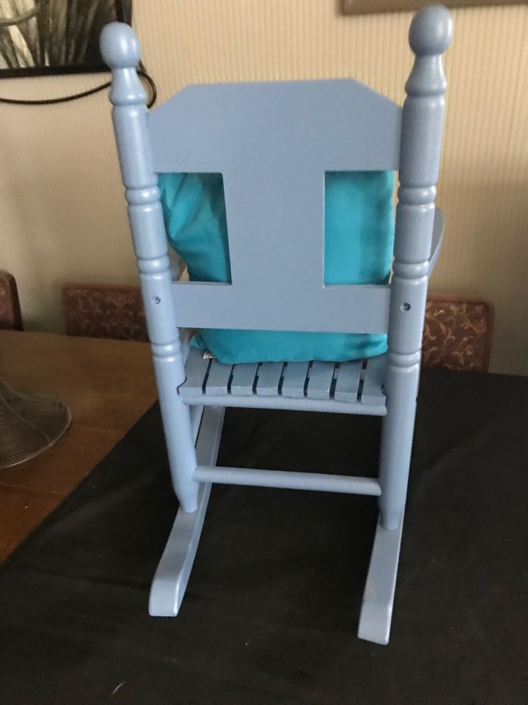 Rocker height to seat 10” - width chair 12” - seat depth 11” - overall height 23” - overall depth 18.5” - Chairs height to seat 13” - width 11.5” - overall height 22.5” - depth 11.5” - Collection only please. Newly refurbished with new cushions excellent condition price for all three items