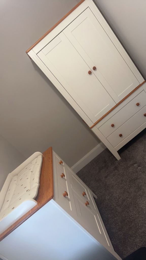 Posting for 8+ yearsCot bed wardrobe and drawers