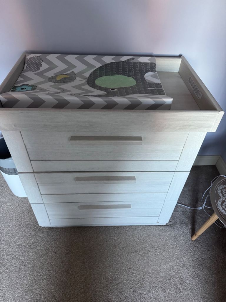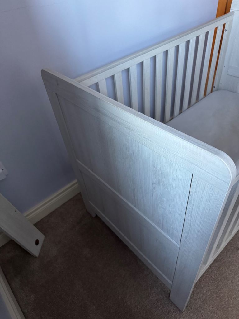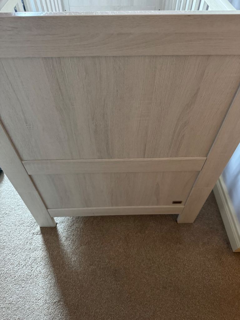 Mamas and papas nursery furniture set. All in very good condition slight mark on the cot see pictures. Cot turns into a toddler bed. Mattress can be included. This is used but still in fantastic condition. Cash and collection only. Any questions just ask
