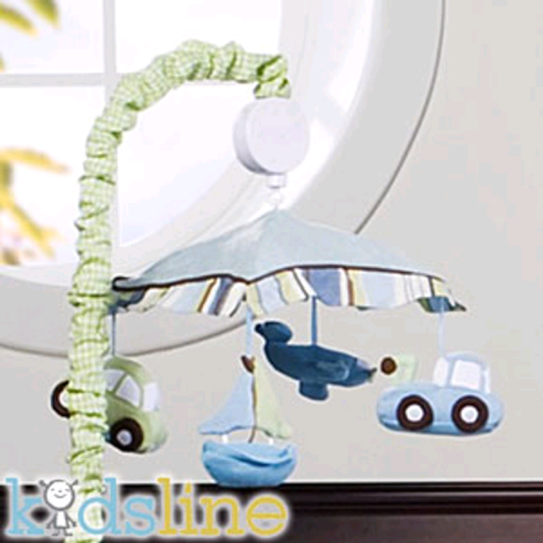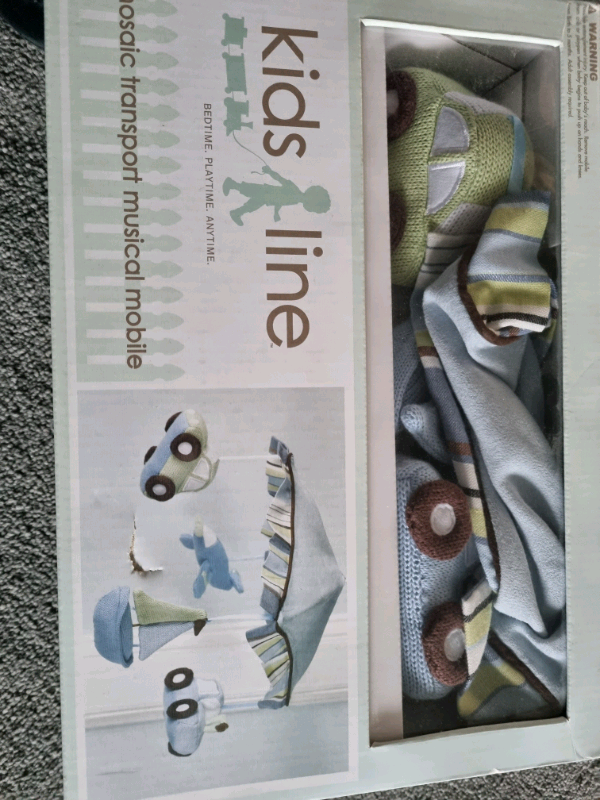 cot mobile kidsline with music. knitted vehicles with shade and wind up rotary function.