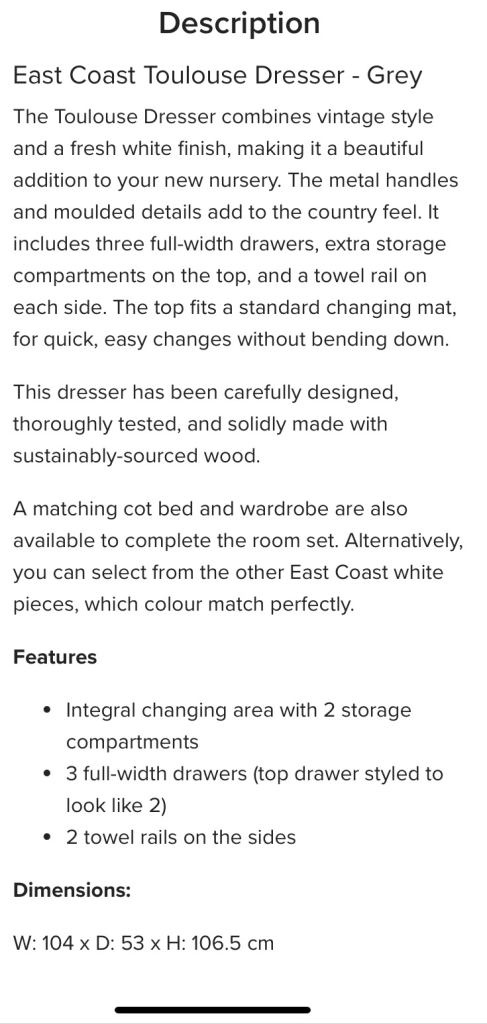 Price is for both together, if wanting separately, £130 for the cot & £140 for the dresser drawers.