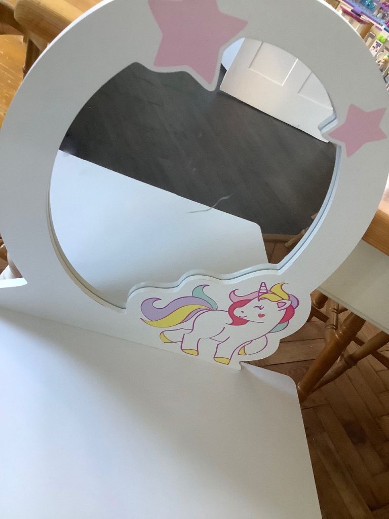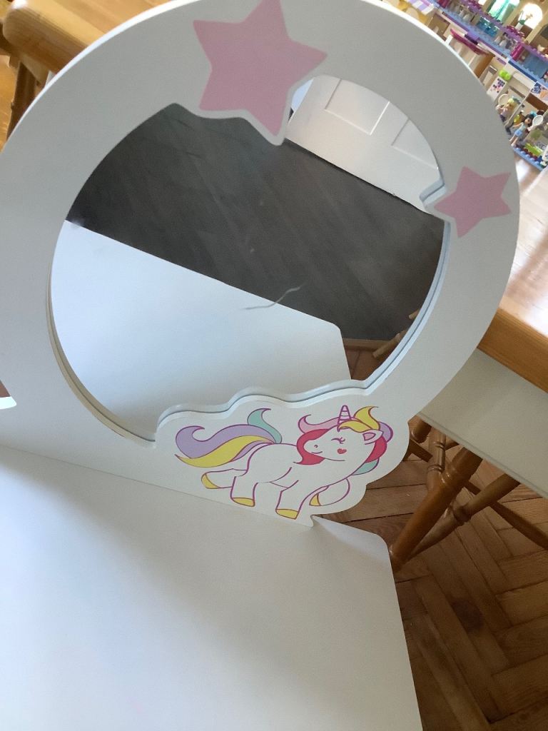 HOMCOM kids dressing table with mirror and stool.