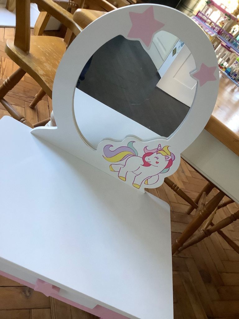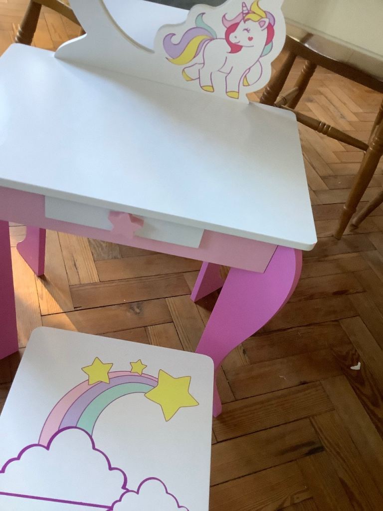 Pink Dressing Table with Mirror and Stool