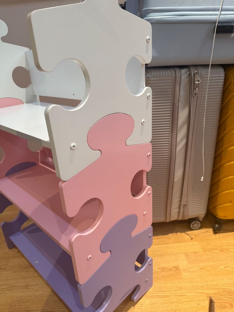 Made of sturdy material with a cute puzzle-style design in pastel colours (white, pink and purple). Perfect for a child’s bedroom or playroom.