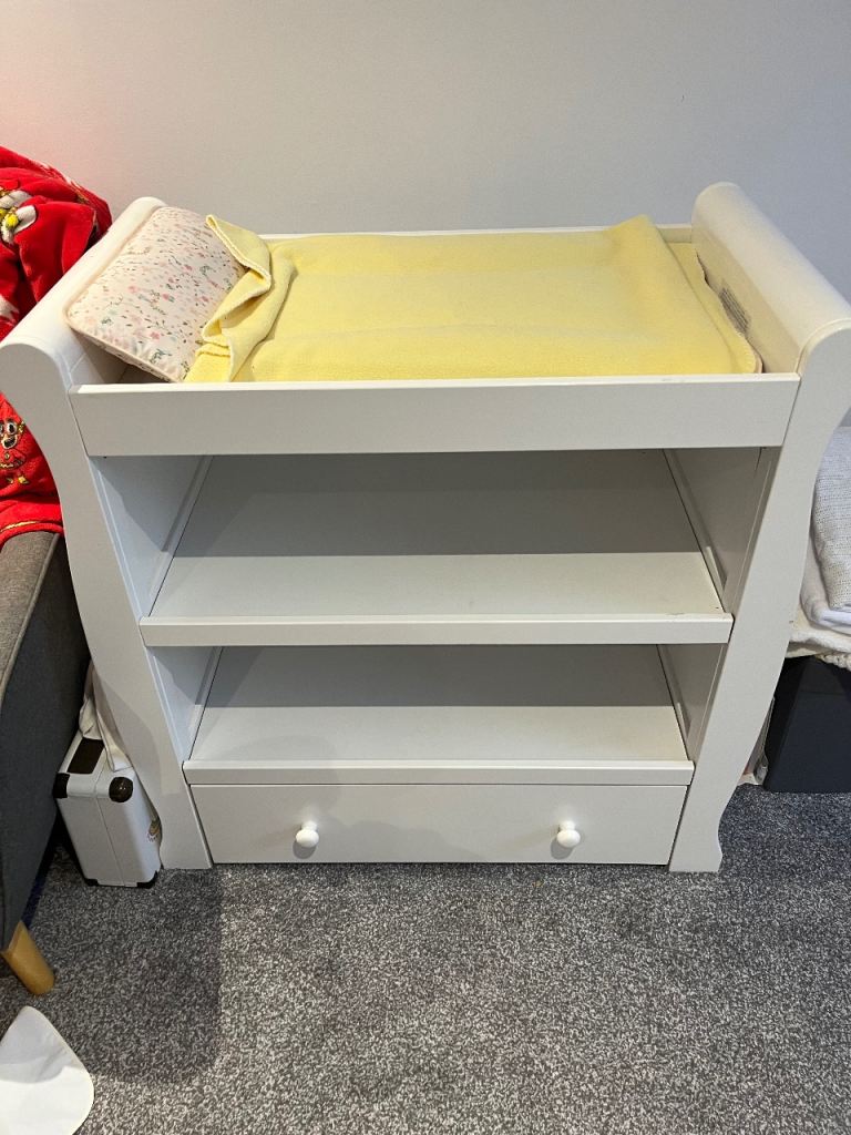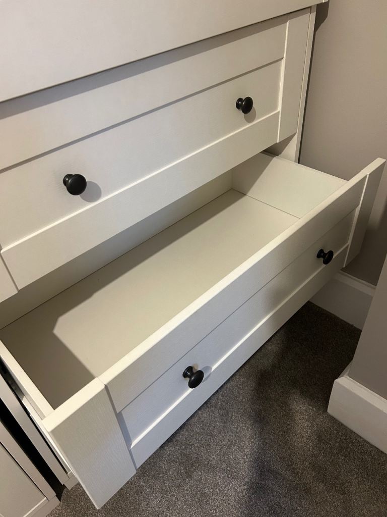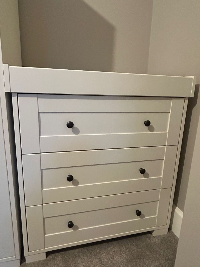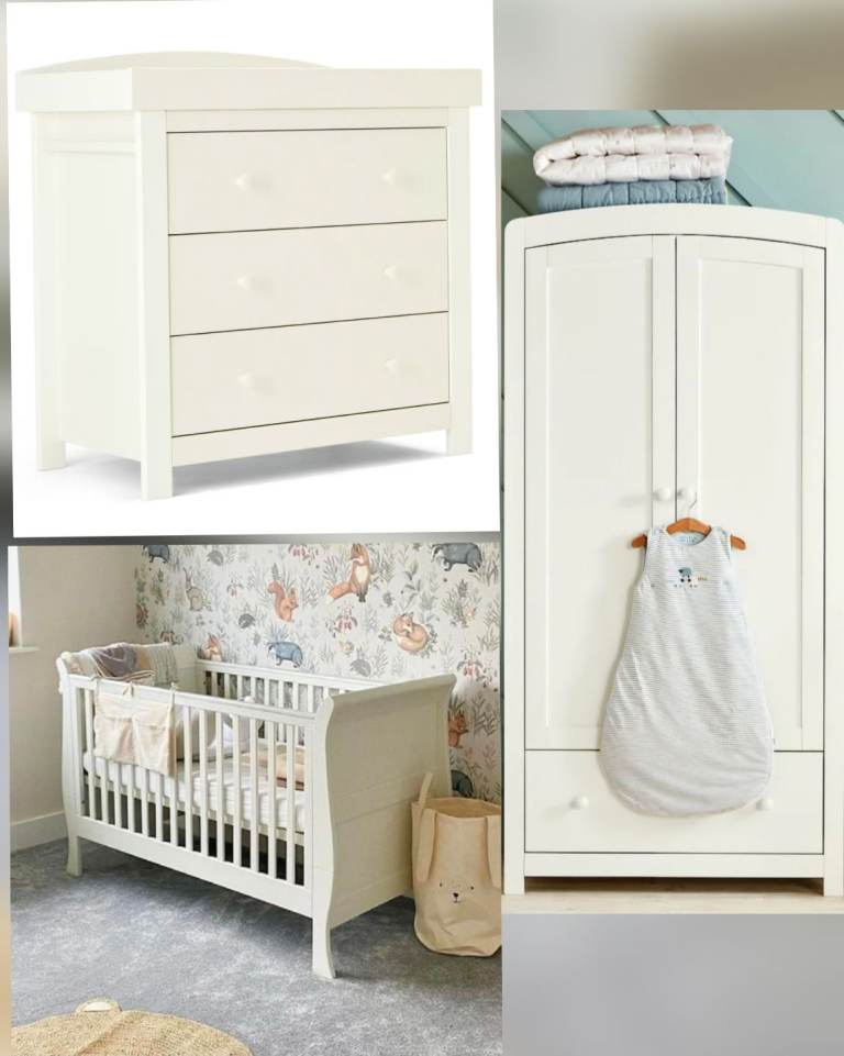 Mama and papas harrow nursery wardrobe and chest of drawers for sale. Few scuff marks on both but no damage or tears. A touch up of paint and would look brand new.