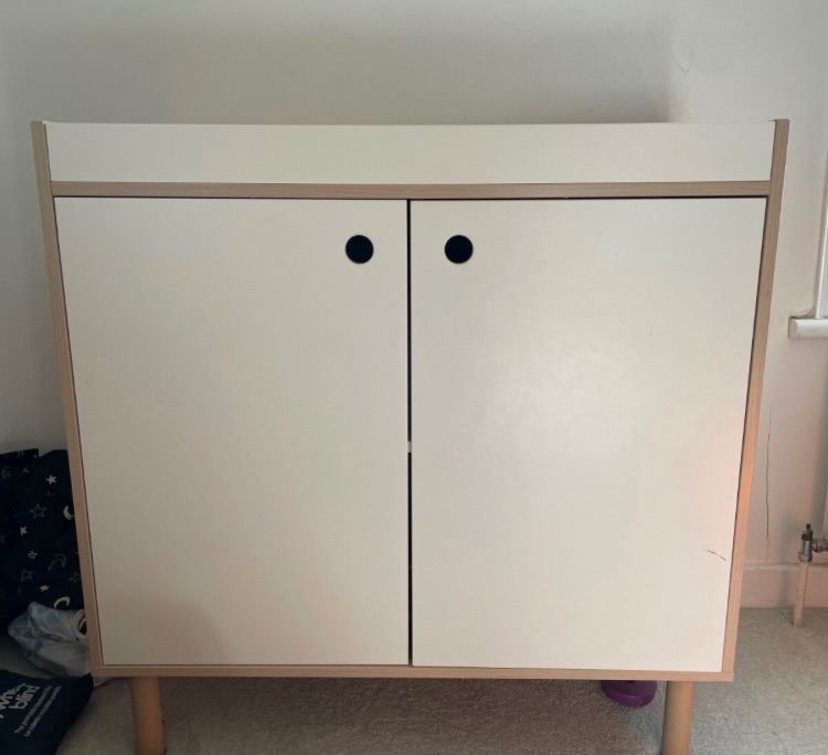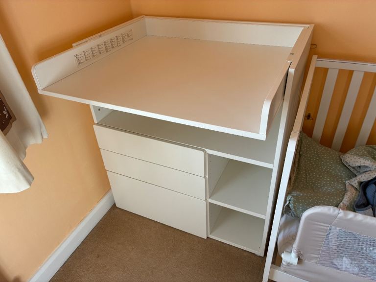 The drawers are as pictured do not have the extra bits for the top of drawers to make them suitable to change baby.