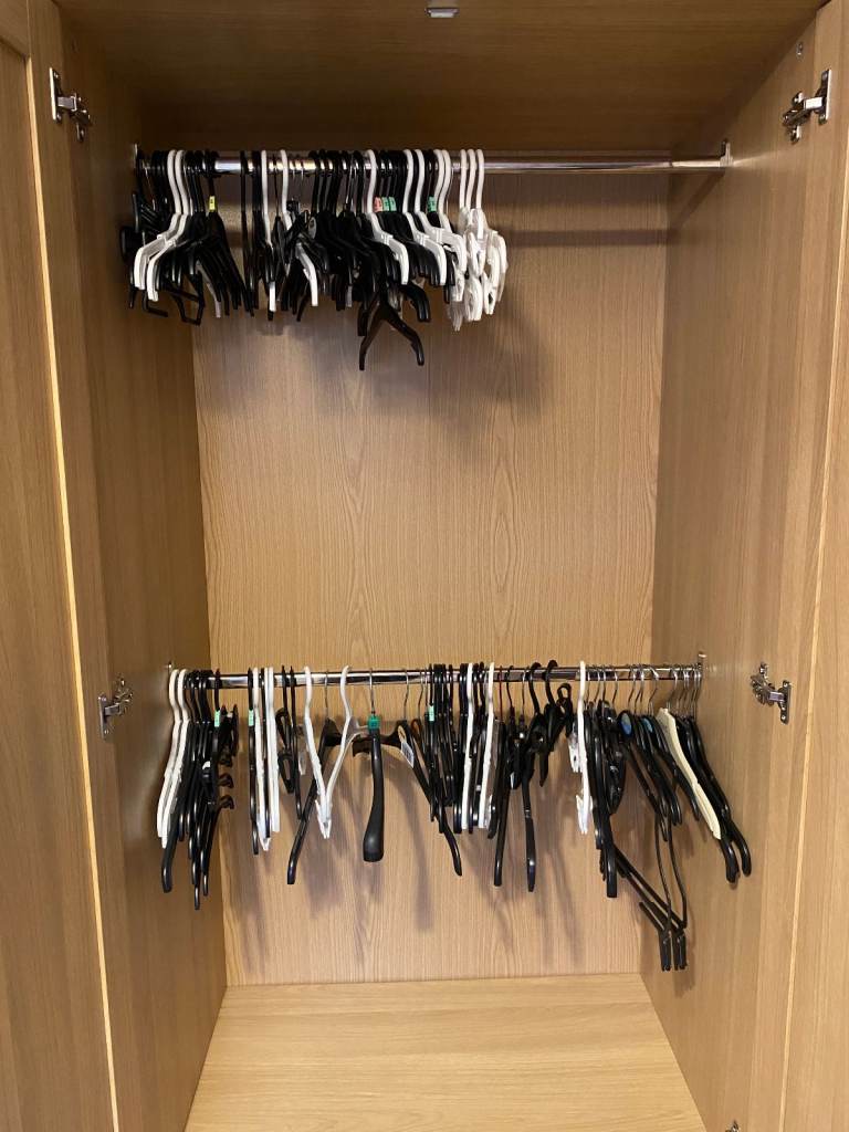 - Wardrobe = H180cm x W80cm x D57cm