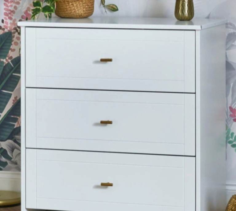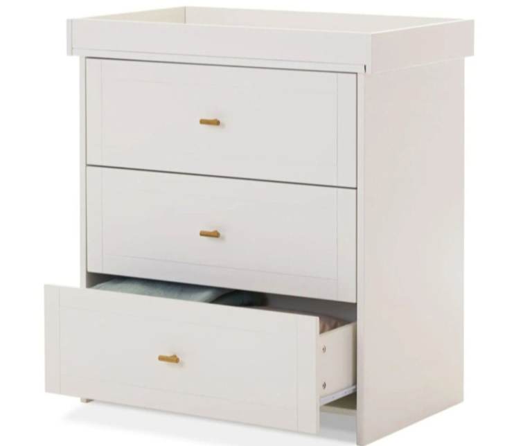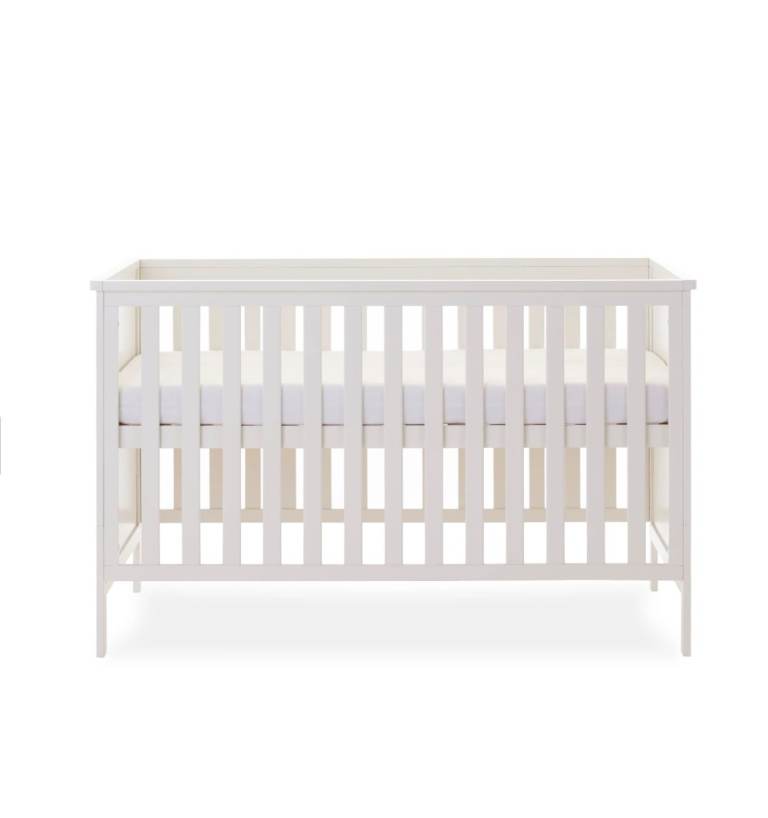 Ex display obaby Evie 2 piece nursery room set, boxed, in white, including cotbed that turns into a junior bed and chest of drawers/changer, £300 for both, new mattress available separately, collection from Dover