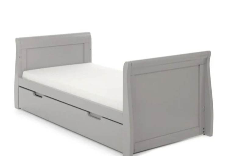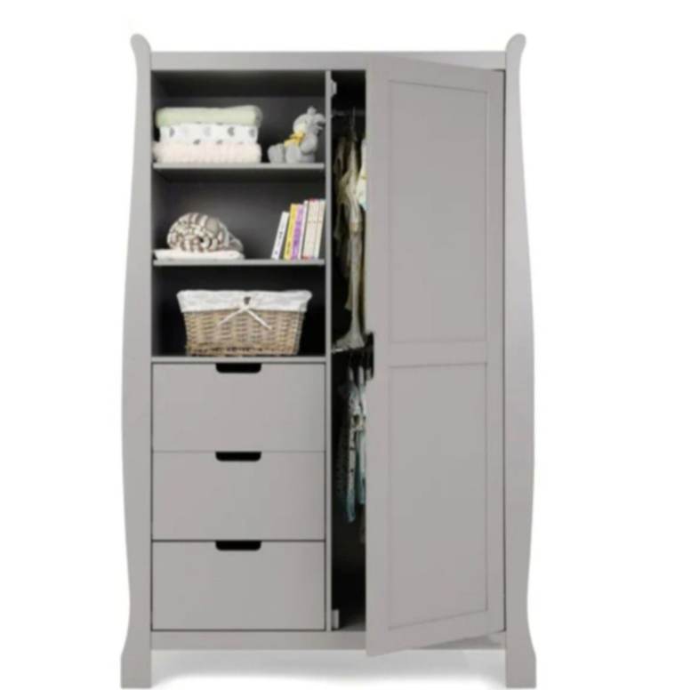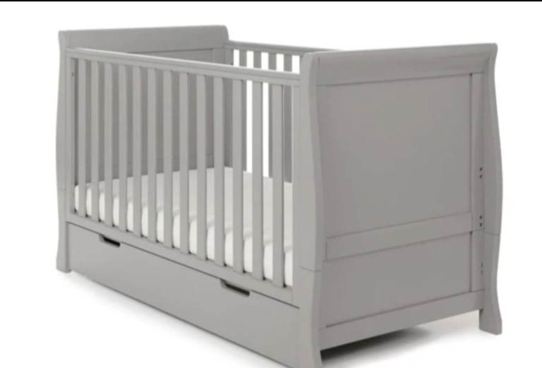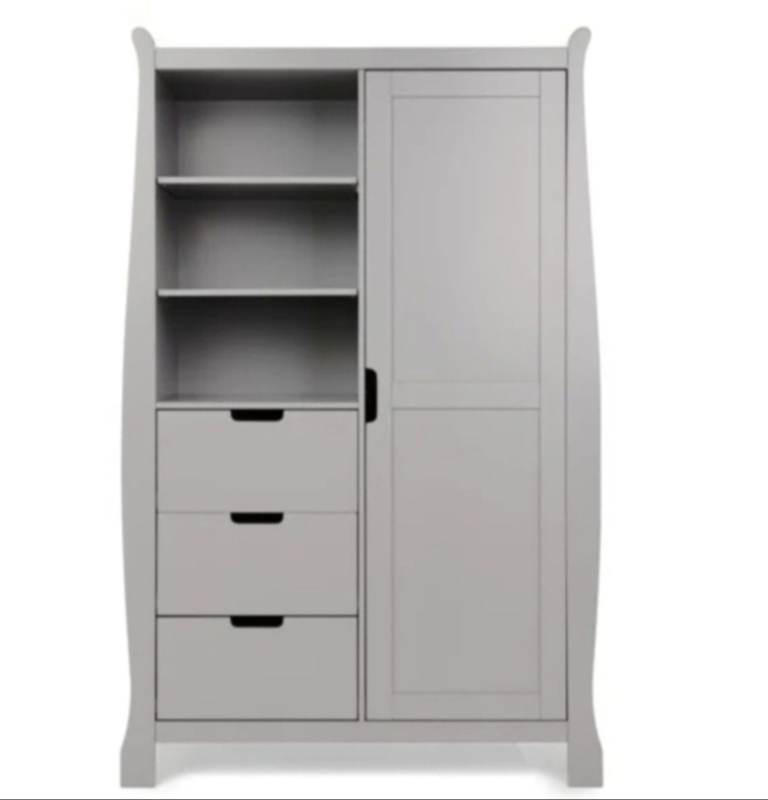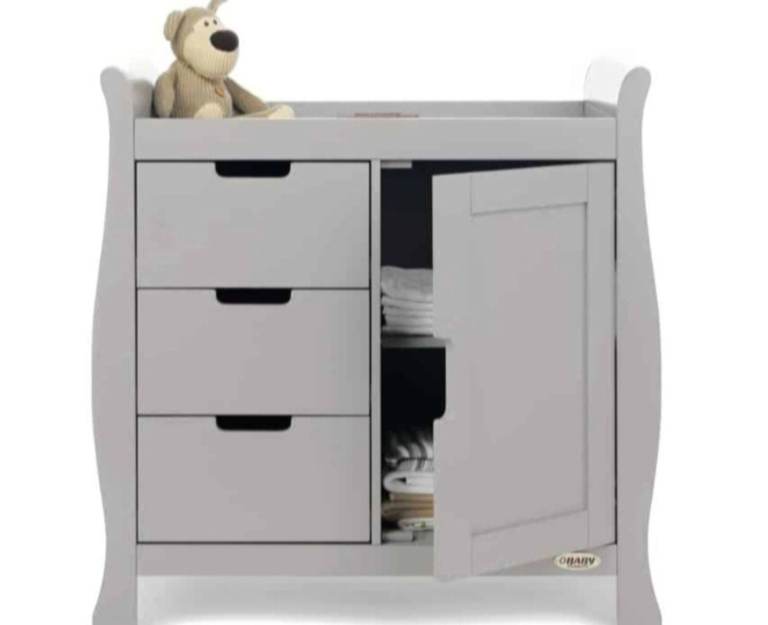 Ex display obaby Stamford nursery room set, all boxed, all matching in warm grey, including classic cotbed that turns into a junior bed and includes under drawer, double wardrobe and dresser/changer, £560 for all, new mattress available separately, collection from Dover