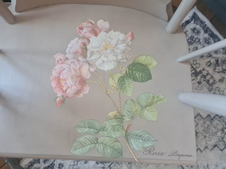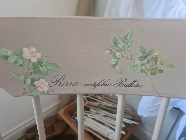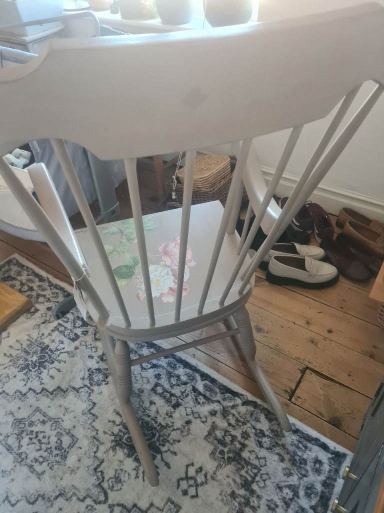 Refurbished rocking chair purchased recently from the boutique farmhouse where it had been lovingly decorated but realised it wouldn't fit in the nursery and they won't accept returns!