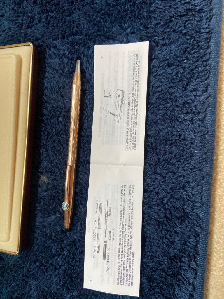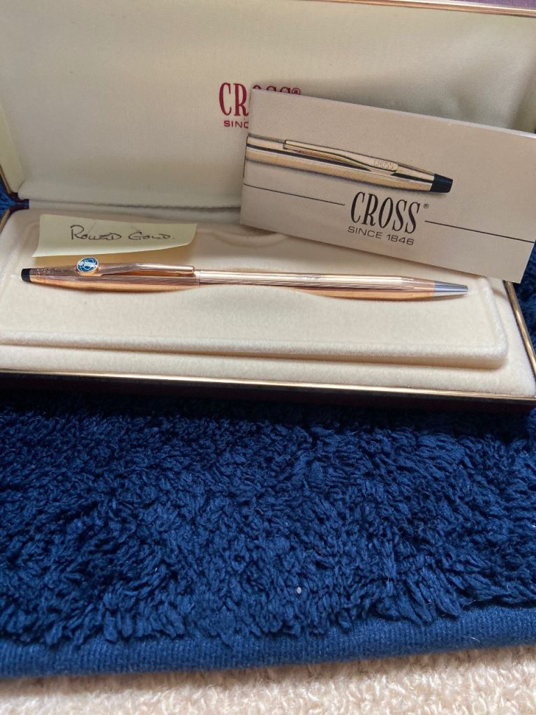 14KT rolled gold CROSS ballpoint pen from 1953, made in Ireland. In full working order in original boxing with instruction manual