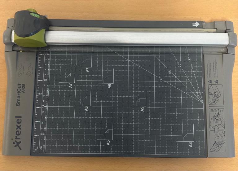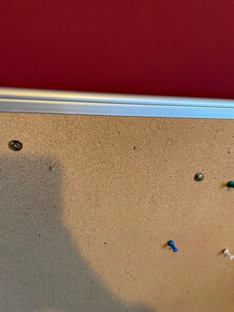 Notice board with metal trim.