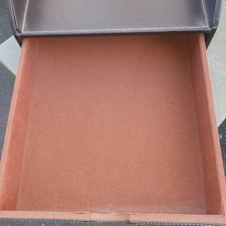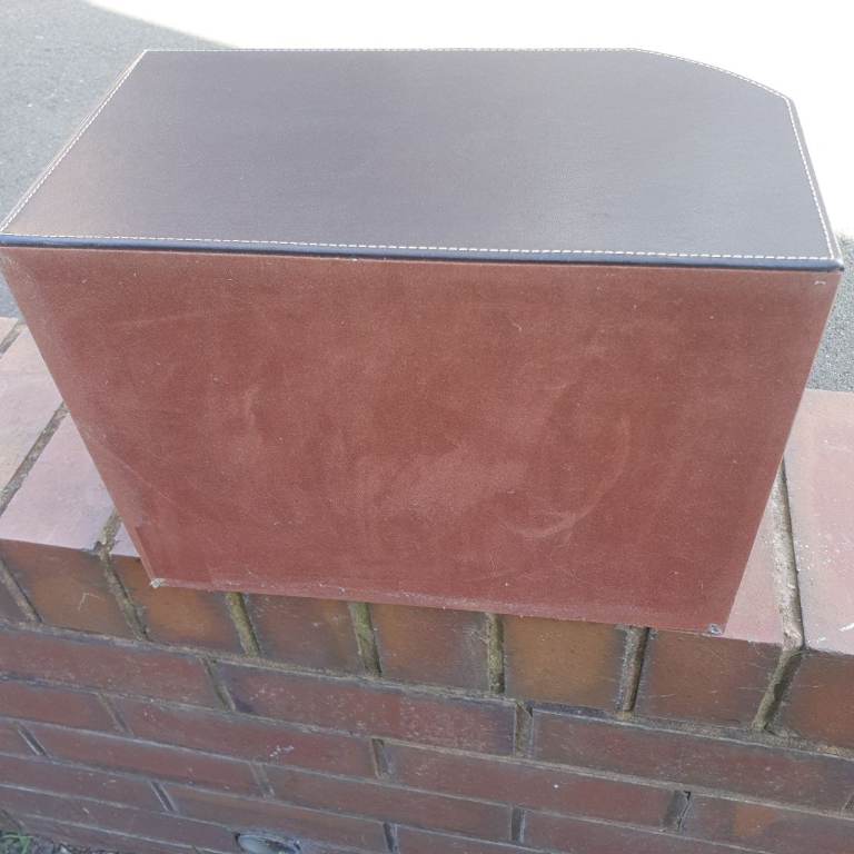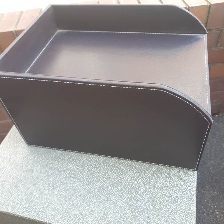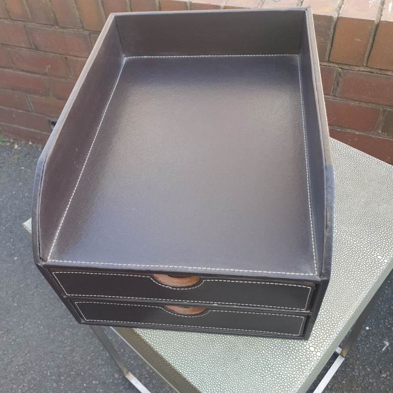Dark Brown Leather Paper Organiser , 2 Draws , Beize Inside Draw & Bottom, 13 x 10 x 8 inches, VGC . Expensive when brand new, Quality, Very Useful , Clean, Attractive. Collection from Russell's Hall, bargain £5.