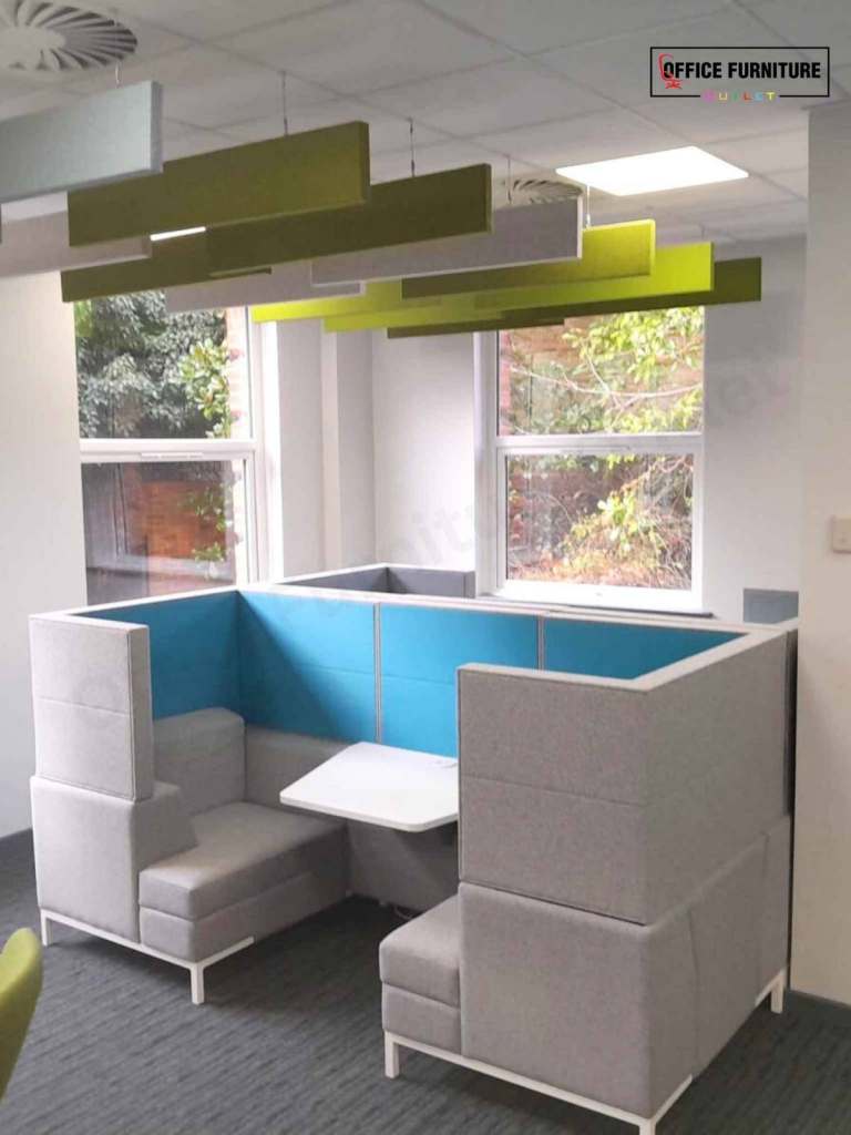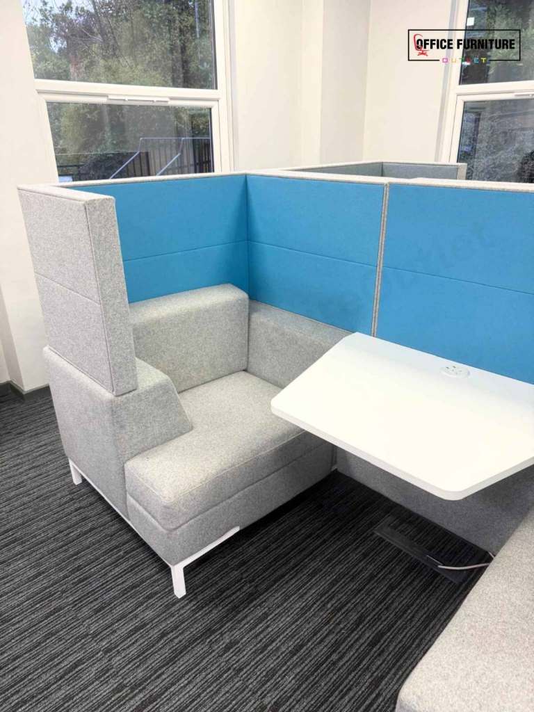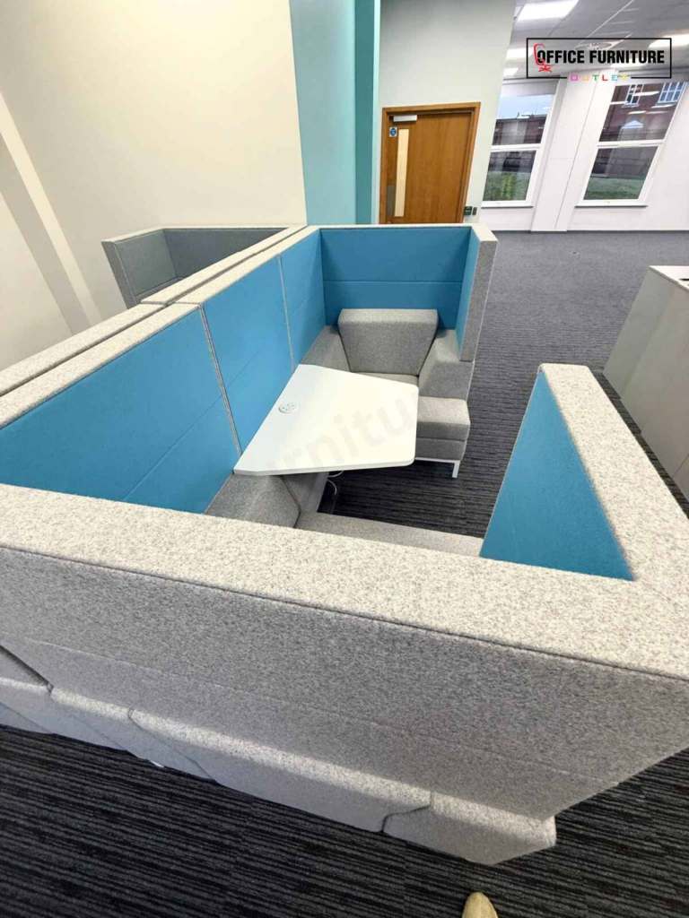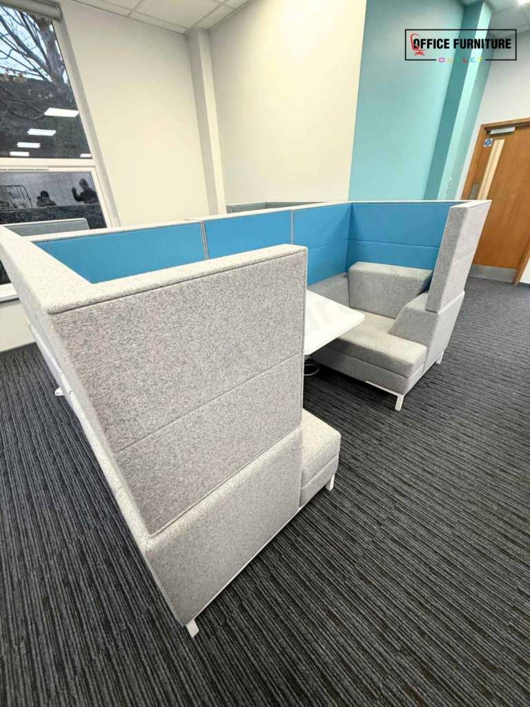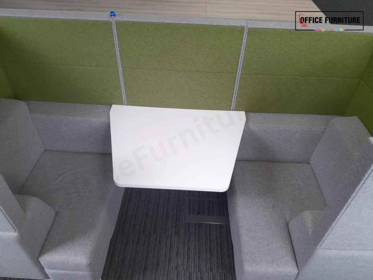 Create a quiet, comfortable space away from the desk with this Gresham two-person acoustic booth, ideal for private conversations, informal meetings, and focused collaboration. Designed to seat two people, this booth offers excellent visual and acoustic privacy within open-plan offices. The high upholstered panels help reduce surrounding noise and distractions, making it perfect for catch-ups, one-to-one meetings, or short breakout sessions. The integrated central table provides a practical surface for laptops, notebooks, or drinks, while the generously padded seating ensures comfort during use.
