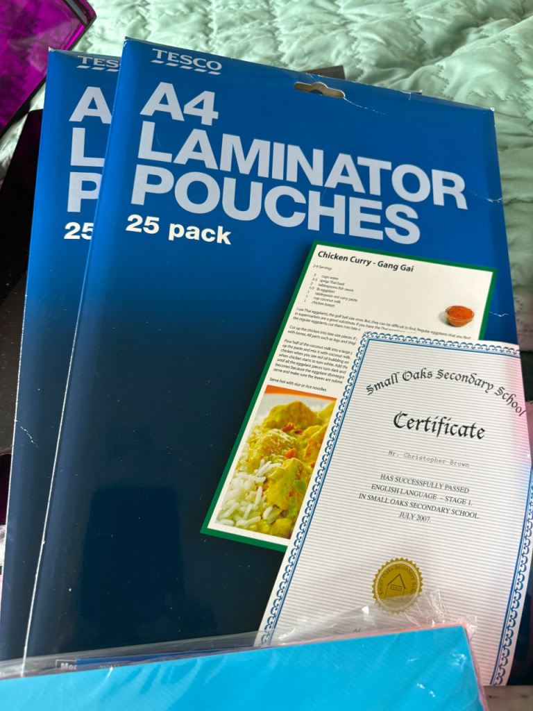 Tesco laminator with two packs of A4 sheets