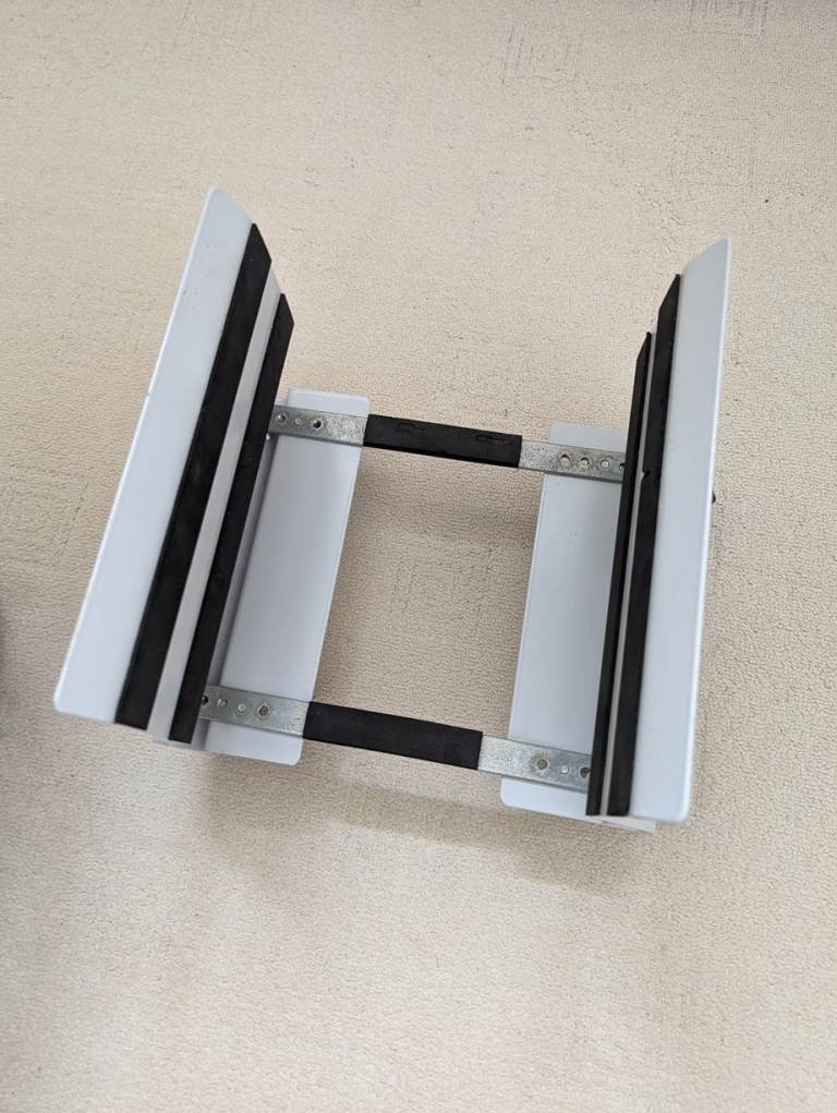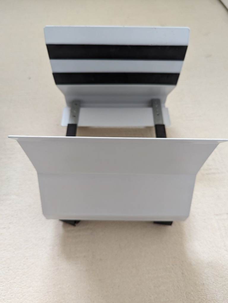Metal PC holder on locking casters, with multiple screw hole/slide adjustments for different-size PC's