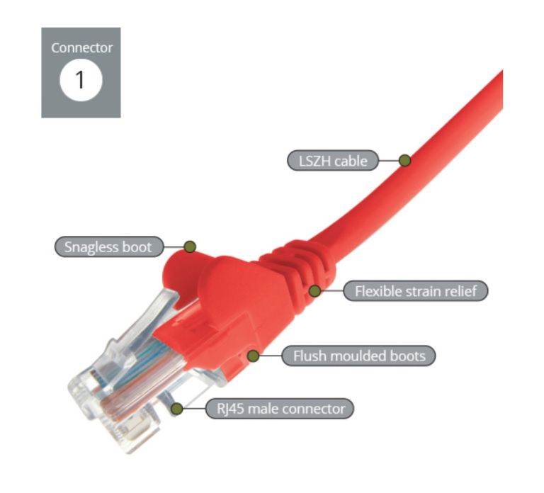 Also known as Ethernet cable LAN cable Patch cable or Flylead Category 6 certified & verified Data transfer speed of up to 1 Gigabit per second (Gbps) 250mhz frequency UTP (Unshielded Twisted Pair) - 8 core/4 pairs of twisted wire Stranded - 7 strands within each core LSZH (LS0H): Low smoke zero halogen Flush moulded boots keep the connector width as slim as possible Snagless boots protect the clip whilst our design still allows easy access to the clip Flexible strain relief moulded collar